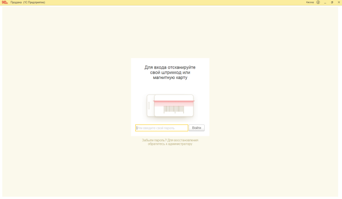 Авторизация кассира посредством сканирования карты кассира, а также вводом персонального кода.