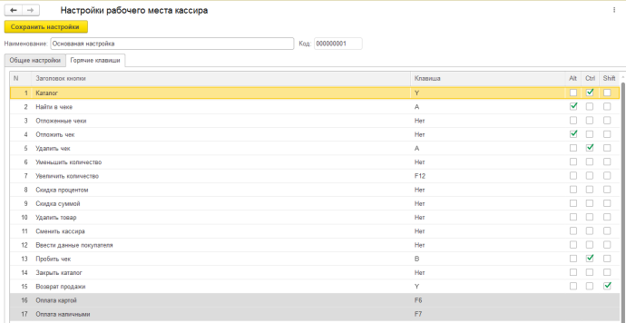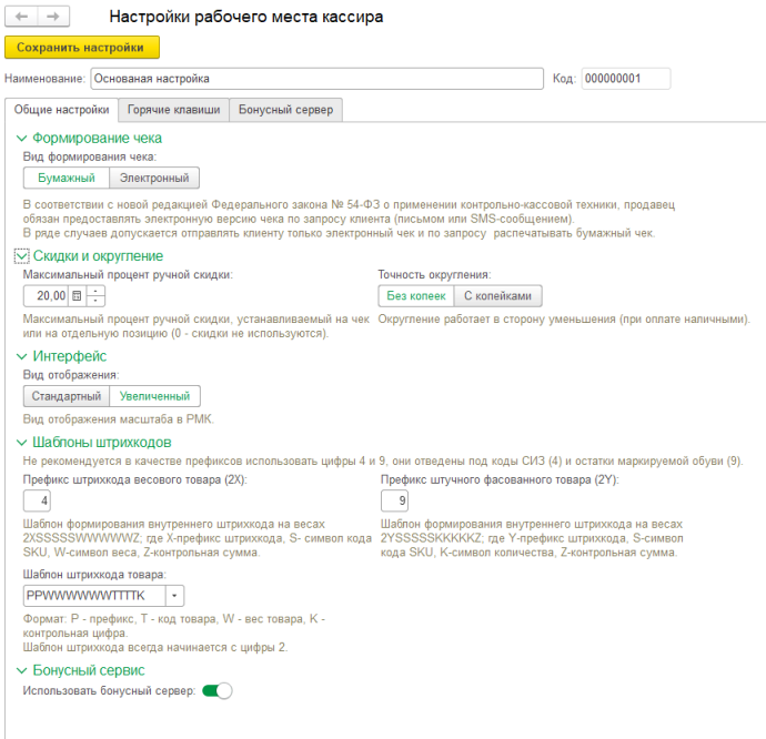 Общие настройки рабочего места кассира: