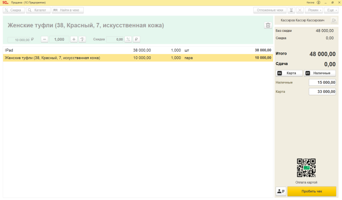 Возможности «1С:Рабочее место кассира»